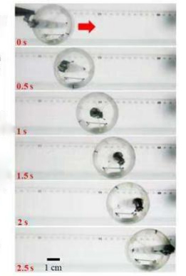 鎵基室溫液態(tài)金屬可以通過電場(chǎng)、磁場(chǎng)等多種方式,實(shí)現(xiàn)變形、移動(dòng)、分離、融合等多種形態(tài)變化,在機(jī)器人、生物醫(yī)學(xué)等領(lǐng)域具有巨大的應(yīng)用前景。但之前在機(jī)器人領(lǐng)域的研究,仍局限在對(duì)處于電解液環(huán)境中的液態(tài)金屬液滴本身的操縱。