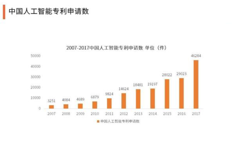 據(jù)了解, 截至2017年12月31日,中國人工智能專利申請數(shù)達46284件。隨著國家大力提倡、投入研發(fā)逐漸增加,人工智能運用到越來越多的行業(yè)領域,未來相關專利數(shù)量應當會持續(xù)增加,人工智能技術產(chǎn)業(yè)化發(fā)展前景向好。