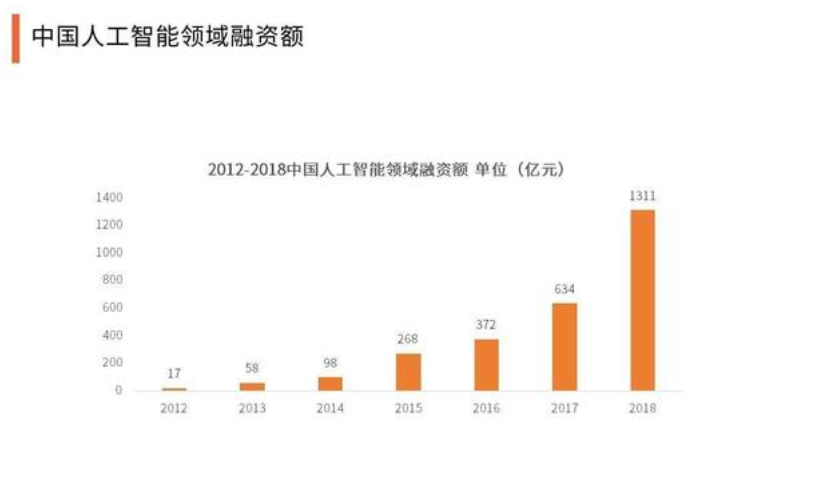 中國人工智能領域融資額