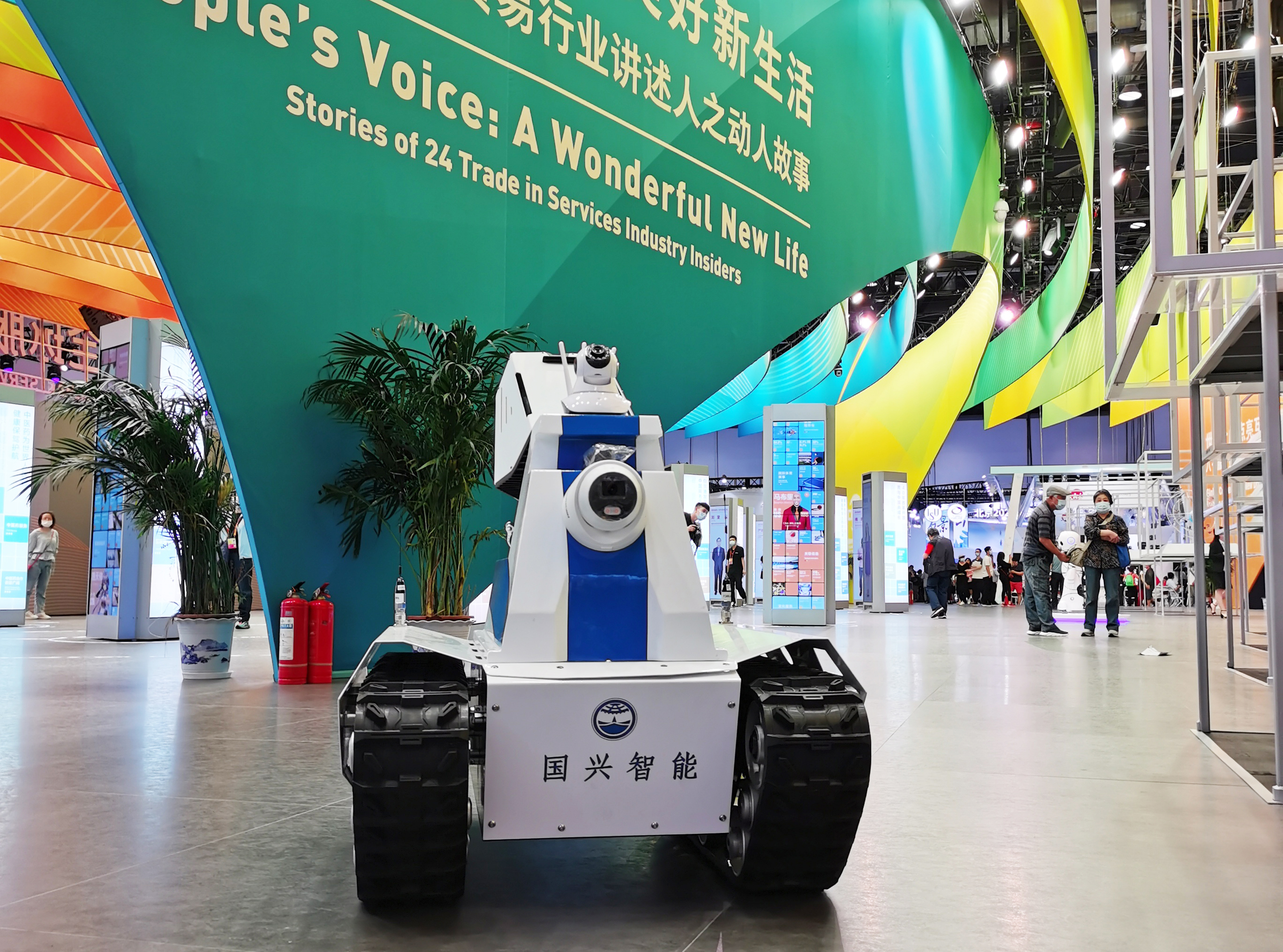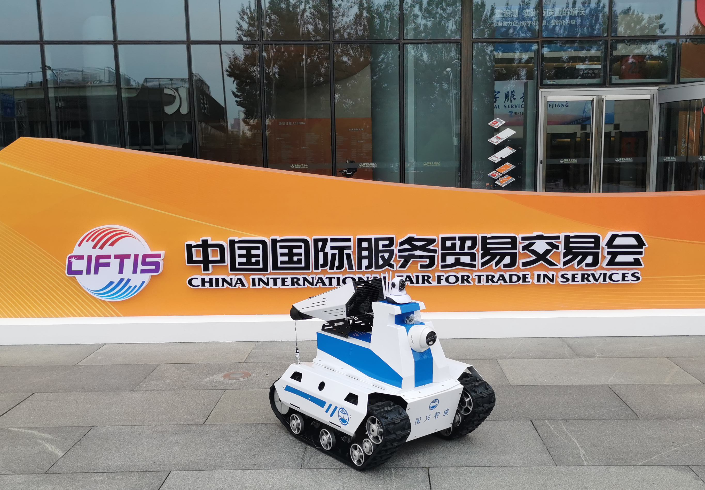 本月,國興智能自主研發(fā)的智能消殺戰(zhàn)疫機器人亮相中國(北京)國際服務(wù)貿(mào)易交易會。