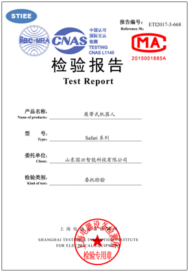 4月10日,山東國興智能科技有限公司的safari系列的履帶式機器人通過了國家權(quán)威機器人認(rèn)證機構(gòu)添唯認(rèn)證(TILVA)檢測成功。