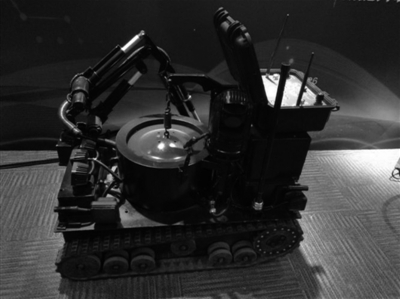 一個(gè)小家伙神態(tài)自若地在幾十雙眼睛的注視下,靈巧地滾動(dòng)著特制的履帶穿過會(huì)場稍顯狹窄的通道走上臺(tái)來,它伸展出自己的機(jī)械臂膀,似乎有些靦腆地接過一位央視帥哥獻(xiàn)上的百合花,卻又毫不遲疑地轉(zhuǎn)身將手中的鮮花獻(xiàn)給了它面前的美女,即刻引來一陣笑聲。