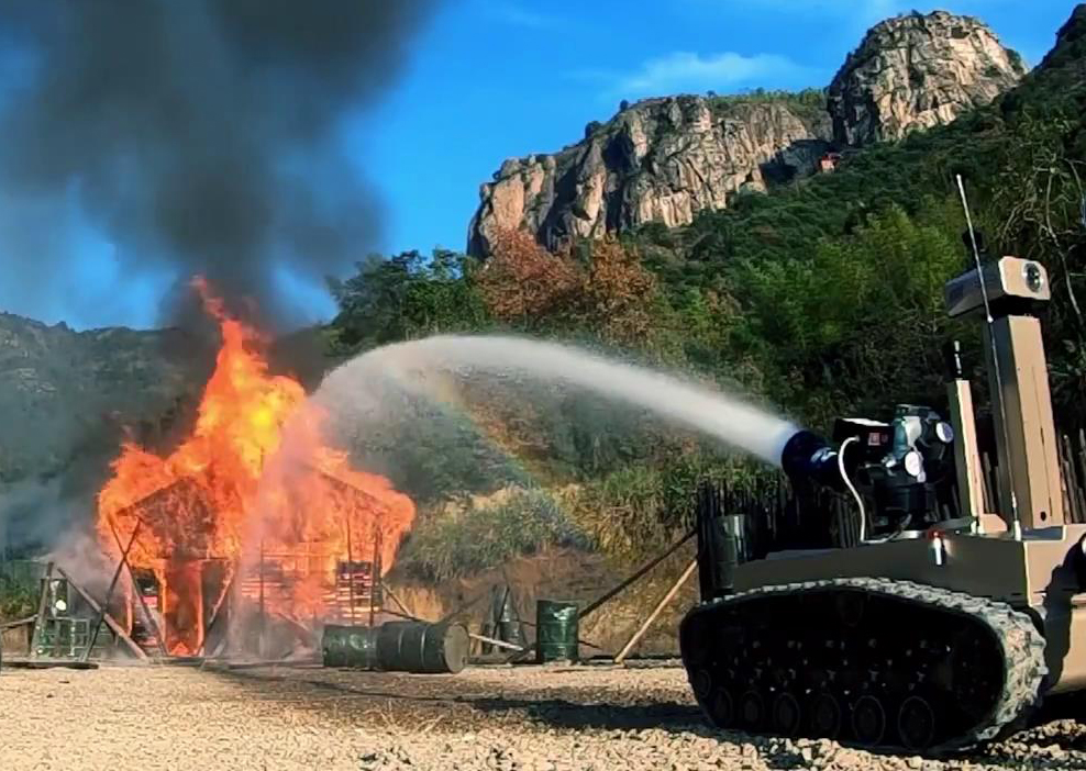消防機器人是一款智能化多功能消防機器人,具有排煙、滅火、送風(fēng)、降溫、除塵、清障、環(huán)境偵測、圖像采集、無線信息傳輸及爬坡越障自行走等功能,能夠代替消防人員安全、高效地處理各種事故??蓱?yīng)用于公(鐵)路隧道火災(zāi),地下設(shè)施與貨場火災(zāi),大跨度空間火災(zāi),石化油庫與煉制廠火災(zāi),大面積毒氣與煙霧事故,人員不易接近的火災(zāi)撲救等領(lǐng)域,也可在危險化學(xué)品災(zāi)害事故造成比較嚴重的環(huán)境污染時用于洗消作業(yè)。