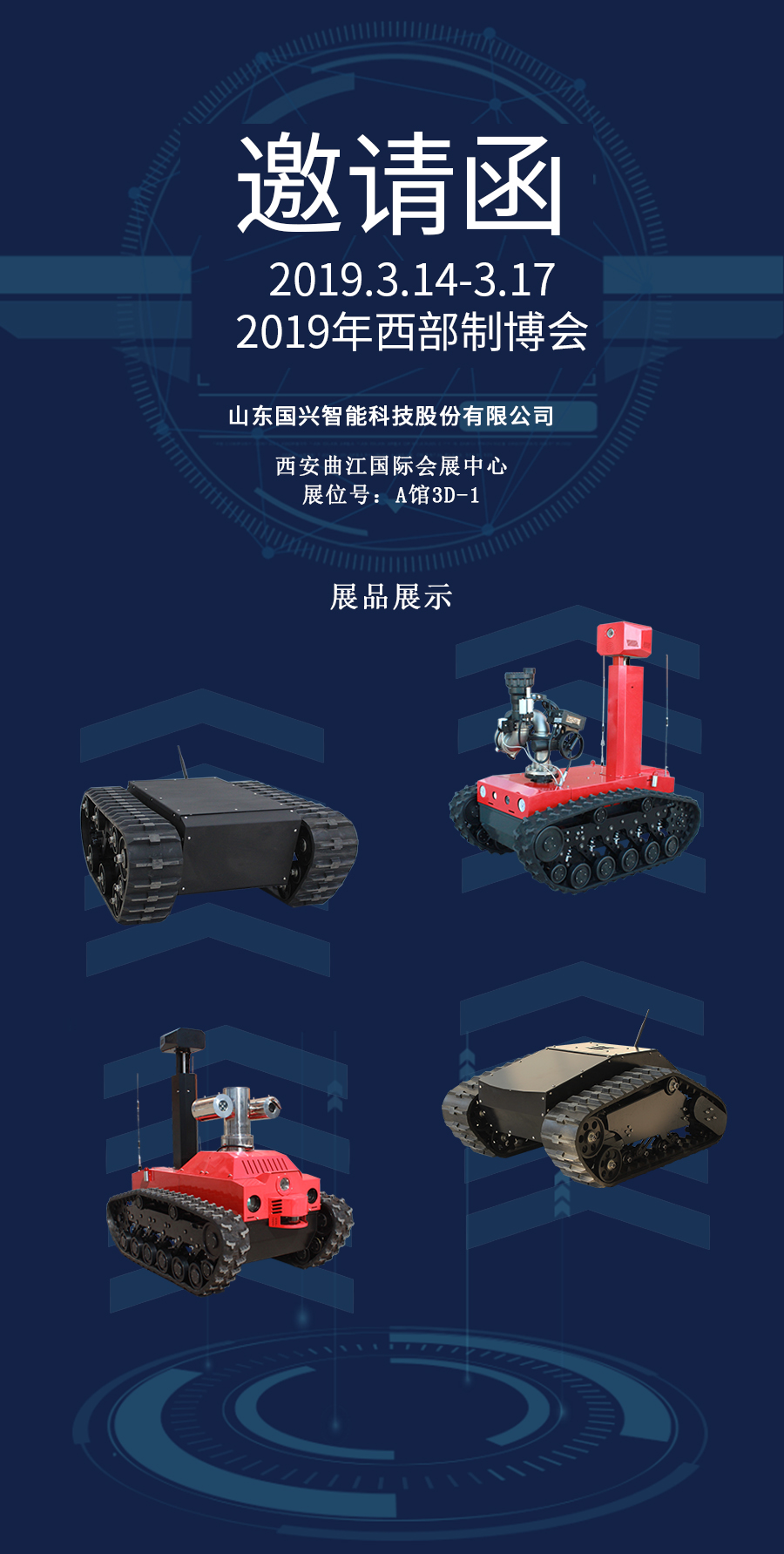 山東國興智能科技股份有限公司將于2019年3月14號至3月17號攜公司全新產(chǎn)品參加第27屆西部制博會,地點是西安曲江國際會展中心。展位號:A館3D-1,歡迎各位領(lǐng)導(dǎo)、朋友蒞臨參觀指導(dǎo)。