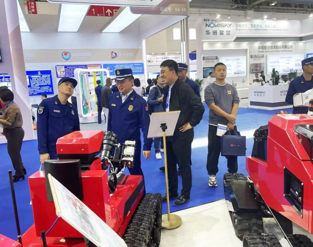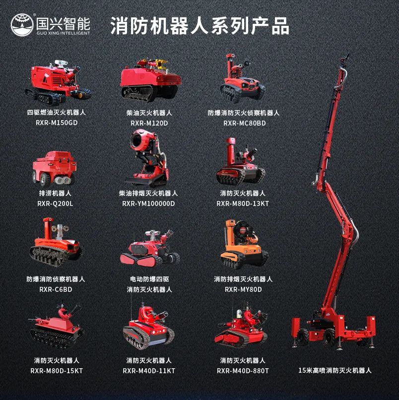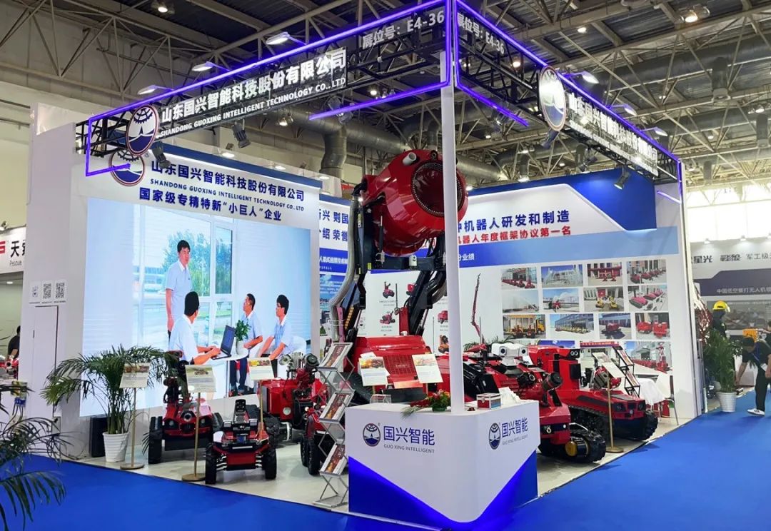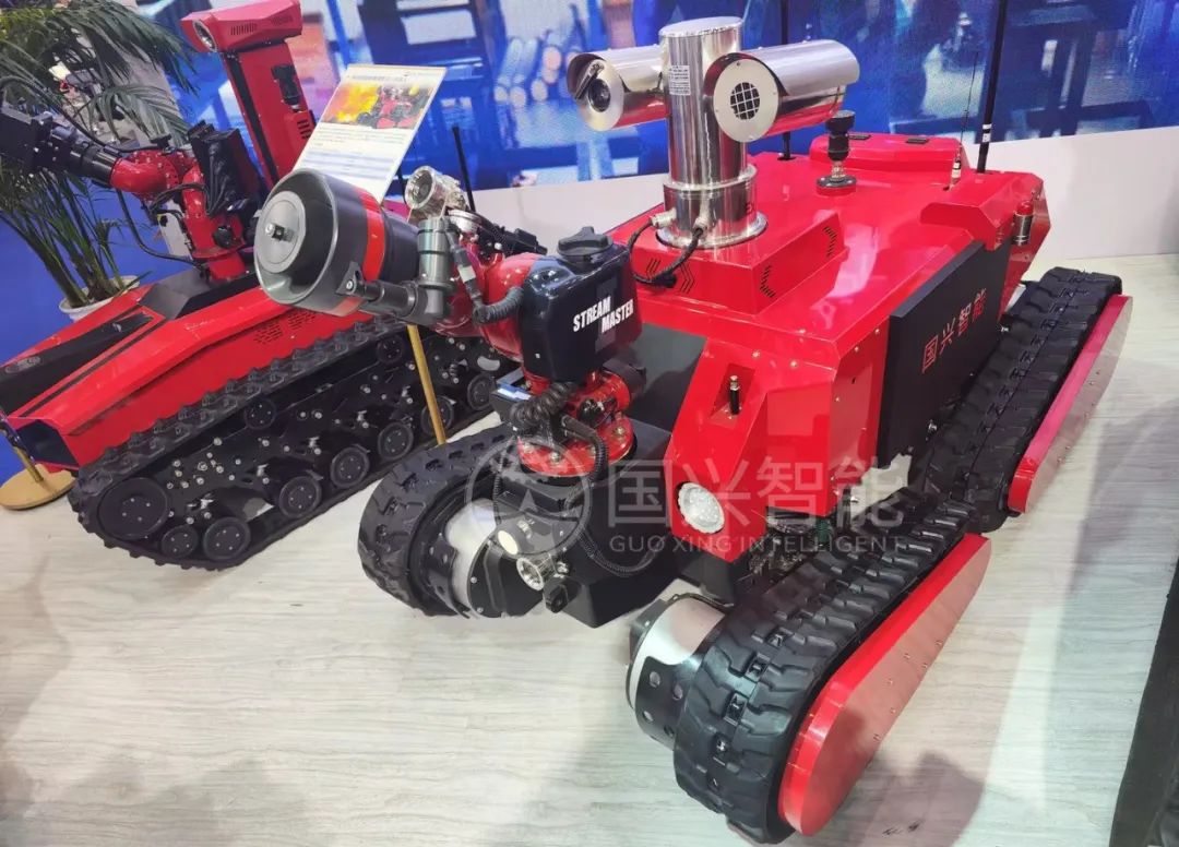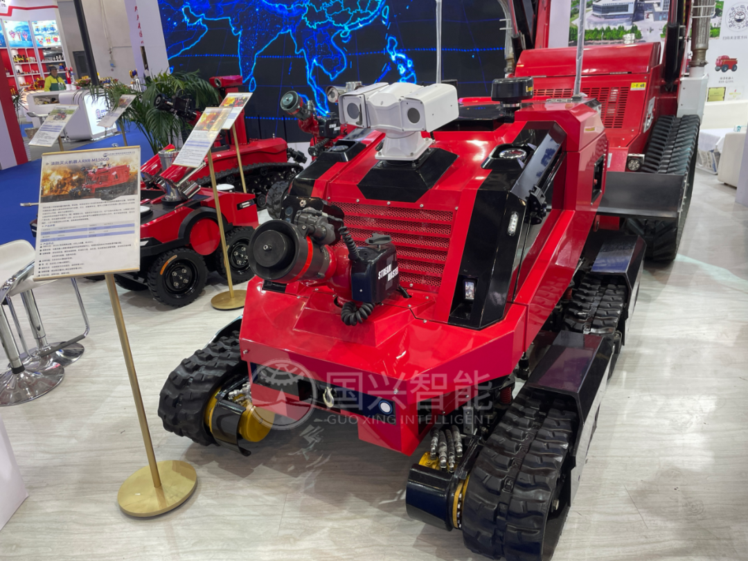 國興智能此次由董事長帶隊,攜明星產(chǎn)品柴油機驅(qū)動快速反應(yīng)滅火機器人、電動防爆四驅(qū)消防滅火機器人、舉升排煙機器人、排澇機器人、防爆輪式巡檢機器人、礦用防爆消防滅火機器人等十余款智能消防機器人到場,現(xiàn)場為參展者展示機器人的新功能,對外展示應(yīng)用場景,詳細講解實際問題解決方案。