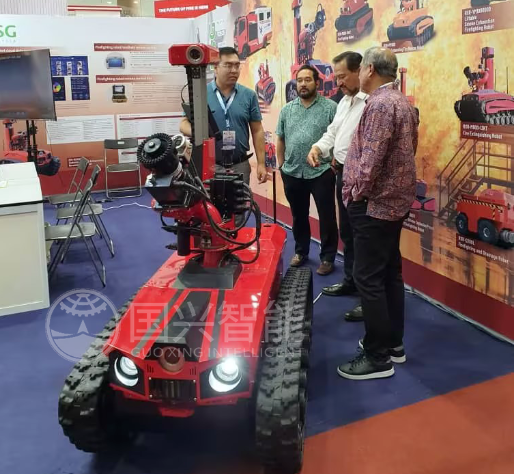 目前,國興智能的產(chǎn)品已遠(yuǎn)銷南北美、歐洲、東南亞和中東地區(qū),例如排澇機(jī)器人、安防巡檢機(jī)器人、消防滅火機(jī)器人及各類軍工底盤都是國際客戶的熱門選擇。據(jù)悉,此次在馬來西亞 2024 年國際消防會議及展覽會上,多國客戶對國興智能智能化、現(xiàn)代化、自動化程度很高的特種機(jī)器人表示感興趣,紛紛在展位駐足停留。