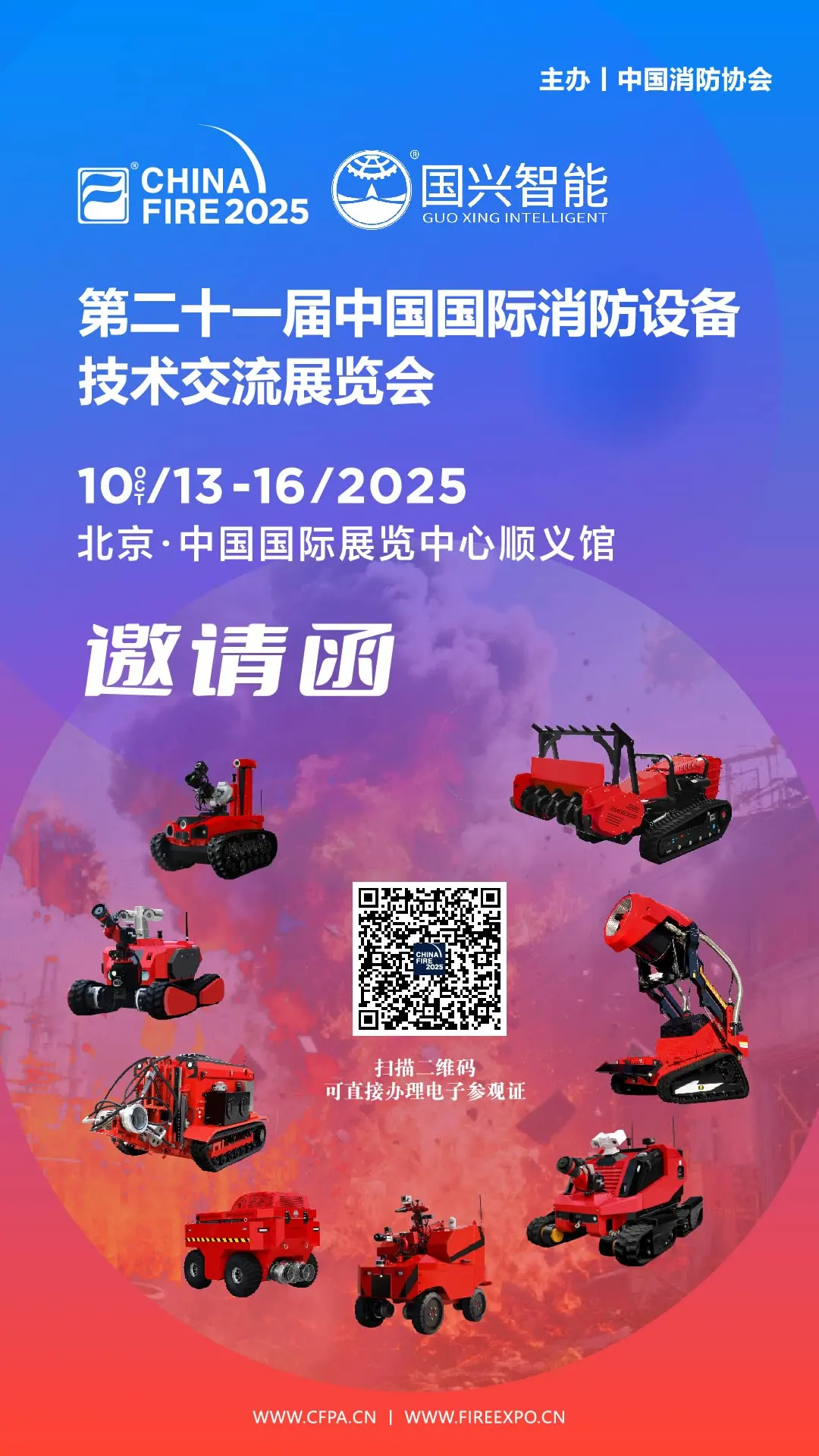 本屆以“科技賦能實戰(zhàn),助力產(chǎn)業(yè)發(fā)展,服務(wù)消防救援”為主題,共吸引來自全球40多個國家(地區(qū))和我國內(nèi)地的1200余家生產(chǎn)廠商、檢測機構(gòu)、科研單位參展。國興智能將于E2-11展位向外界展示近20種消防滅火機器人,值得期待。