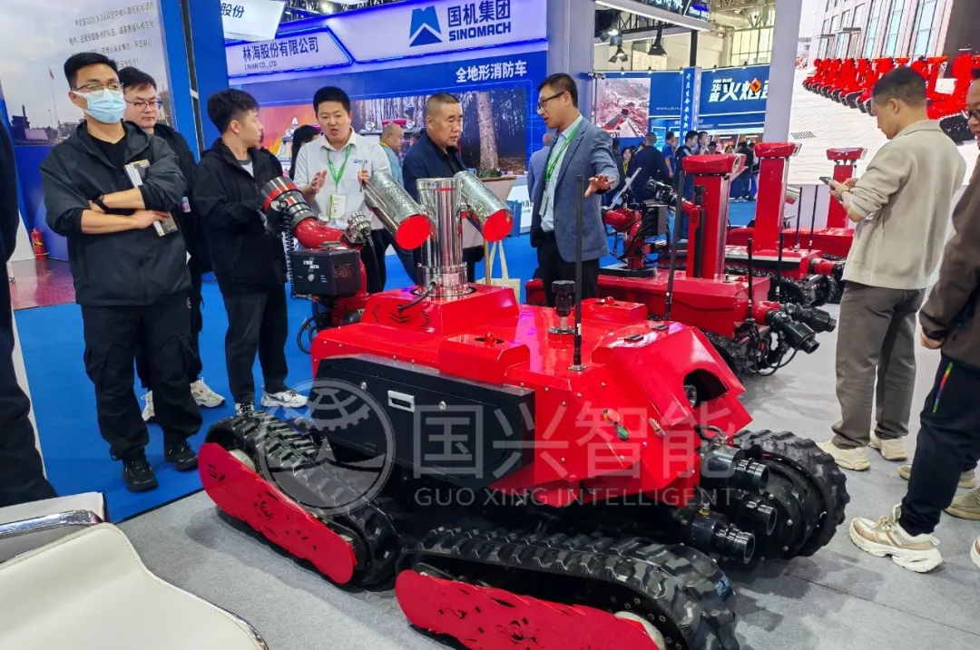 據(jù)現(xiàn)場負(fù)責(zé)人介紹,國興智能此次推出了2025年最新的特種機器人,相比常規(guī)消防滅火機器人具備更智能化、更先進、更符合實戰(zhàn)需求的新功能。并已創(chuàng)新出一系列的綜合消防救援方案——多種高度智能化的消防滅火機器人打出“組合拳”,使得救援效果1+1≥2。